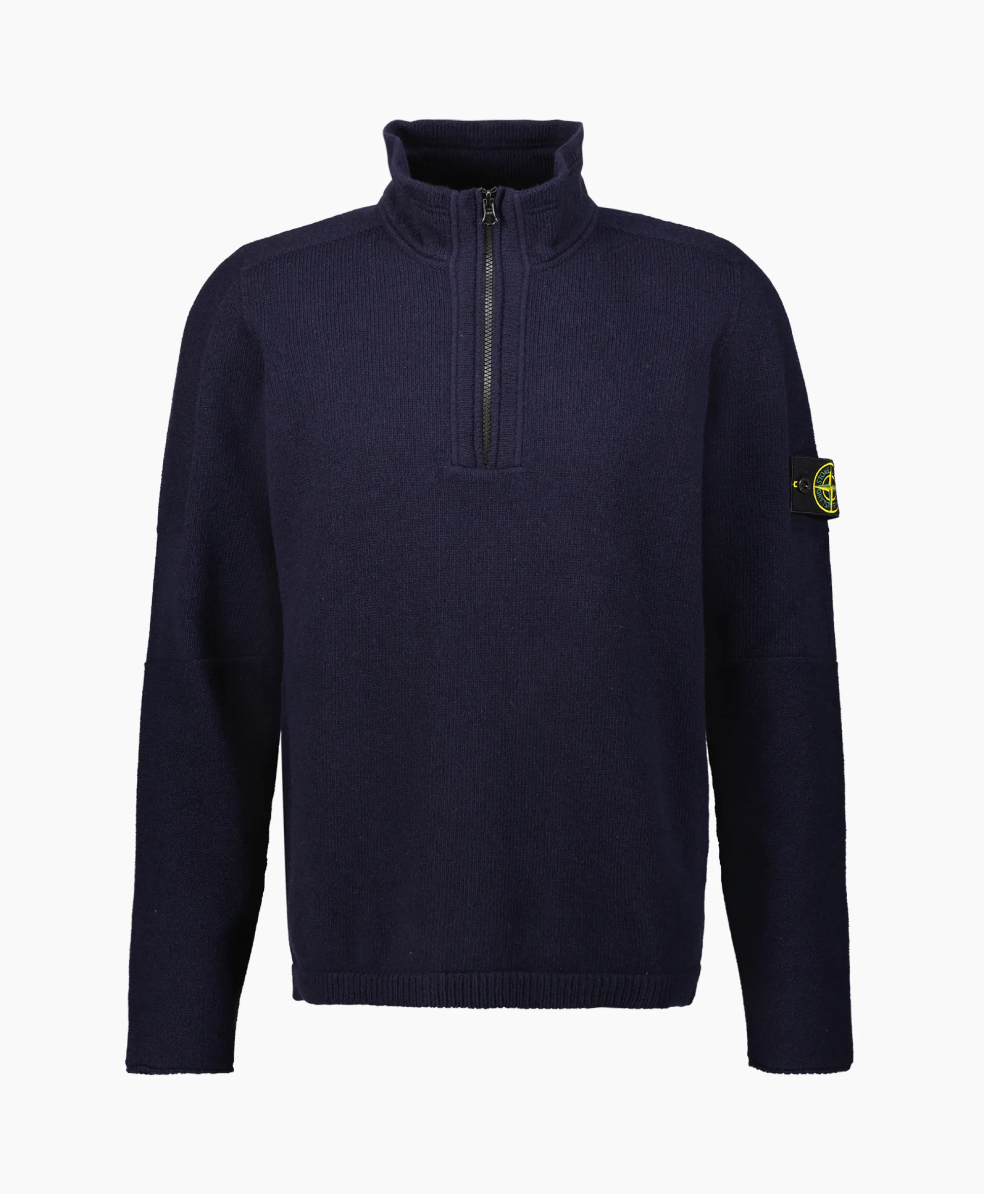 Gebreide Pullover Van Lamswol Met Halve Rits. Normale Pasvorm. Opstaande Kraag Met Overgestikte Parallelle Lijn. Halve Ritssluiting Aan De Hals. Het Achterste Bovendeel En De Onderarmen Zijn In Averechte Tricotsteek. De Voorkant En Het Midden Van De Mouwen Zijn In Tricotsteek. Stone Island-Badge Op De Linkermouw. Kleine Rolafwerking Bij De Manchetten. Geribde Onderband.&Nbsp;&Nbsp;