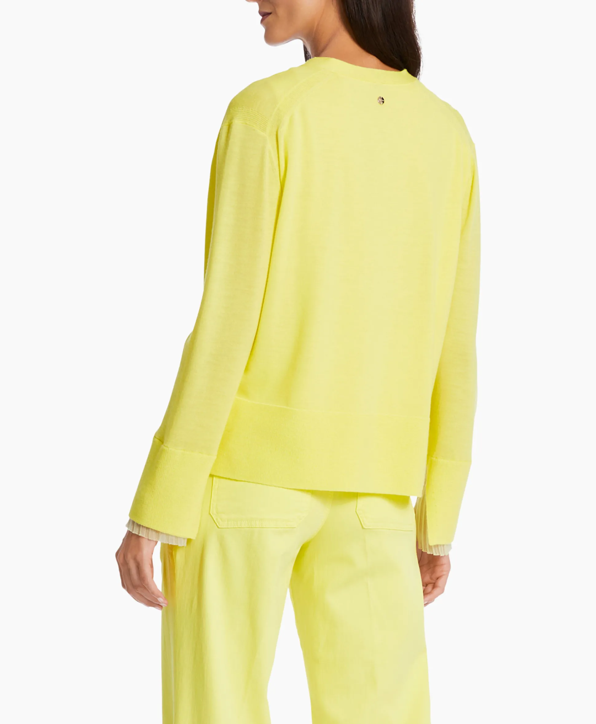 Deze Cardigan Is Gemaakt Van Zuiver Scheerwol Met Geplisseerde Inzetstukken En Komt Uit Het Duurzaamheidslabel ʽRethink Togetherʼ. Hij Heeft Een Relaxt Gebreid Design Met Zijsplitten. De Diepe V-Hals Mondt Uit In Een Knopenrij. Het Model Is 179 Cm Lang En Draagt Maat N3 / 38. Materiaal: 100% Polyester, 100% Scheerwol.